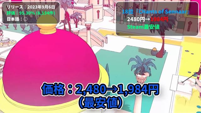 #ホロライブ #LethalCompany #baldursgate3 ■動画に間に合わないセール情報はこちらで ツイッタ(X) https://x.com/hagu7061 ディスコード https://discord.gg/CXGVWPmNuQ ■おすすめの動画 Steamウィンターセール① https://youtu.be/tyPULupD2dg EPICホリデーセール https://youtu.be/bvnKi25mr0o GOGギャラクシー https://youtu.be/AzniUZcnyu8 ━━━━━━━━━━━━━━━━ 目次 00:00 ■今週の内容 00:46 ■SteamDB版!2023年トップランキング!1位~10位 05:55 ■SteamDB版!2023年トップランキング!11位~20位 11:01 ■注目の早期アクセス『リターン・フロム・コア』『Path of the Abyss』 12:59 ■EPIC日替り配布 振り返りと日本語化 15:22 ■アマプラ限定配布など 16:31 ■【TOP20】Steam国内売上ランキング 17:00 ■【おまけ】やってたゲーム ━━━━━━━━━━━━━━━━ 無料配布まとめ ━━━━━━━━━━━━━━━━ ■EPIC日替わりとGOG配布は ディスコードか 最新動画のコメント欄に ------------------------- 【日本語化】『ヒューマン・リソース・マシーン』 C:\Users\AppData\Roaming\Human Resource Machine の中の settings.txtを開いて language = system の部分を language = jp 修正 ------------------------- ■【アマプラ配布】 https://amzn.to/3kXgrQL ■【IG配布】Oniken: Unstoppable Edition http://hagumeta.net/IG_Oniken ━━━━━━━━━━━━━━━━ ■SteamDB版!2023年トップランキング! データベースの公式ページ https://steamdb.info/stats/gameratings/2023/ ━━━━━━━━━━━━━━━━ 1位『HoloCure - Save the Fans!』 無料 http://hagumeta.net/S_HoloCure 2位『Lethal Company』 http://hagumeta.net/S_Lethal_Company 3位『Pizza Tower』 http://hagumeta.net/S_PizzaTower 日本語化 https://steamcommunity.com/sharedfiles/filedetails/?id=2965464314 4位『Resident Evil 4』 Steam http://hagumeta.net/S_RE4 GPUK http://hagumeta.net/GPUK_RE4 5位『VPet』 無料 http://hagumeta.net/S_VPet 6位『Cats Hidden in Paris』 無料 http://hagumeta.net/S_CatsHiddeninParis 7位『Cats Hidden in Jingle Jam』 無料 http://hagumeta.net/S_CatsHiddeninJingleJam 8位『デイヴ・ザ・ダイバー』 Steam1920円 http://hagumeta.net/S_DAVETHEDIVER GMG(XP)1632円 http://hagumeta.net/GMG_DAVETHEDIVER 9位『Baldur's Gate 3』 http://hagumeta.net/S_BaldursGate3 10位『Papa's Freezeria Deluxe』 http://hagumeta.net/S_PapasFreezeriaDX 11位『Brotato』 http://hagumeta.net/S_imo 12位『Crab Champions』 http://hagumeta.net/S_CrabChampions 13位『Pineapple on pizza』 http://hagumeta.net/S_Pineapple_on_pizza 14位『Volcano Princess(火山の娘)』 http://hagumeta.net/steam_VolcanoP 15位『Steam Engine Simulator』 無料 http://hagumeta.net/S_steamEngineSim 16位『LIZARDS MUST DIE』 http://hagumeta.net/S_LIZARDS_MUST_DIE 17位『Bomb Rush Cyberfunk』 http://hagumeta.net/S_BombRushCyberfunk 18位『Chants of Sennaar』 Steam http://hagumeta.net/S_ChantsofSennaar EPIC http://hagumeta.net/E_ChantsofSennaar 19位『Hi-Fi RUSH』 Steam http://hagumeta.net/steam_hi-fi GMG(2776円) http://hagumeta.net/gmg_Hi-FiRUSH FANA(5%クーポンで2648円) http://hagumeta.net/fana_Hi-FiRUSH EPIC(2,188円+219P) http://hagumeta.net/EPIC_hi-fi 20位『ソニック・ザ・ヘッジホッグ殺人事件』 無料 http://hagumeta.net/S_TheMurderofSonic ■注目の早期アクセスタイトルを紹介 『リターン・フロム・コア』 http://hagumeta.net/S_ReturnFromCore 『Path of the Abyss』 http://hagumeta.net/S_Path_of_the_Abyss ━━━━━━━━━━━━━━━ プロフィール ━━━━━━━━━━━━━━━ ■ブログ『ハグメタゲームズ』 https://pretoku.com/ PC用おすすめのコントローラー 【純正品】Xbox ワイヤレス コントローラー + USB-C ケーブル https://amzn.to/3RGJjLx 【純正品】Xbox ワイヤレス コントローラー + ワイヤレス アダプタ for Windows https://amzn.to/3LIAInA Xbox ワイヤレス アダプター for Windows 10 (転売対象なのかして高いのでセット↑で買うほうがいい) https://amzn.to/3EZO0IW Xbox 充電式バッテリー + USB-C ケーブル https://amzn.to/3RCsGjZ 富士通 充電池・充電器 HR-3UTC(4B) https://amzn.to/46tqVKm パナソニック 単3形単4形ニッケル水素電池専用充電器 https://amzn.to/3rpnOEp