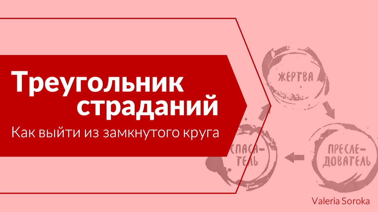 Треугольник страданий. Треугольник Карпмана. Как выйти из замкнутого круга? Как выглядит треугольник? Зачем нам роль жертвы? Какие еще есть роли в треугольнике отношений? Карпман - это только про отношения? Жертва, Агрессор и Спасатель - откуда берется эта ролевая игра? От тебя нужно только желание найти свои ответы, а у меня огромный опыт за плечами и множество инструментов. Какие у меня инструменты и кто я? Зовут меня Валерия Сорока. 1. Я - дипломированный Регрессолог и гипнотерапевт. Регрессия и Прогрессия— изучение хвостов прошлых жизней. 2. Я - Мастер-учитель Рейки 3 ступени. Энергопрактик и Энерготерапевт. Мой личный опыт энергопрактик с моих 8 лет, с людьми работаю с 2002 года. Использую энергии в медитативных практиках прямо на консультациях и помогаю залечивать кармические хвосты в регрессиях. 3. Я — Таролог с опытом более 20 лет. Консультирую. Через нумерологию Таро мы смотрим матрицу вашей судьбы. Я помогаю понять отношения со значимым человеком, помогаю увидеть кармические задачи, помогаю осознать финансовые возможности и даже заглянуть в свою Тень. Обучаю Таро с нуля. 4. Я - Рунолог. Работаю с энергопотоками скандинавских и нортумбрийских рун. Консультирую. Создаю ставы и заряженные предметы под ваш запрос. Обучаю через проживание каждого рунического потока. 5. Я — Шаманка. Природный шаманизм, магия друидов и родовые практики. Работаю с иерархией рода, с родовым древом и эгрегором рода. Работаю по детско-родительским вопросам. Работаю с первоэлементами, стихиями, природными энергиями и обучаю им. Работаю с шаманскими рунами на консультациях, занимаюсь диагностиками всех видов. Провожу человека в его личное Место Силы, где мы часто знакомимся и с Тотемом человека. 6. Я — Литотерапевт. Работаю с природной энергией натуральных камней. Создаю любые украшения под ваши запросы для мягкой коррекции нужной сферы жизни. Заряженные браслеты, колье, бусы, сережки, четки изготавливаются только для вас. Обучаю пониманию и взаимодействию с натуральными камнями. 7. Я - дипломированный частнопрактикующий психолог с очень широким кругозором, специализация Психология личности. Пользуюсь КПТ, Гештальт подходами и Телесно-ориентированной терапией (психосоматика), методами нейрографики и онейроидными снами. 8. И, наконец, Я - Проводник и Наставник. Природа заложила в каждого из нас таланты, но мы себя не знаем. Кто я? На что я способен? Зачем я родился? Почему у меня в жизни случается то и это?
