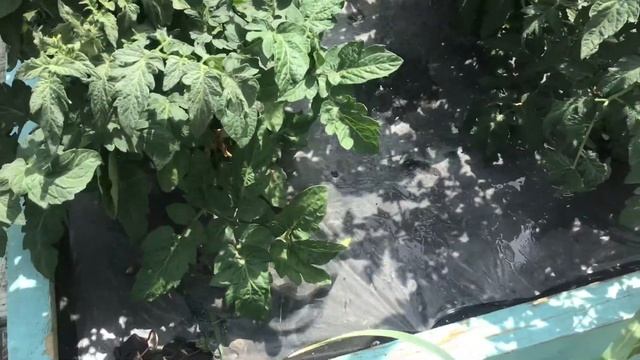Полив Томатных Гномов на поднятых грядках, покрытых пленкой.