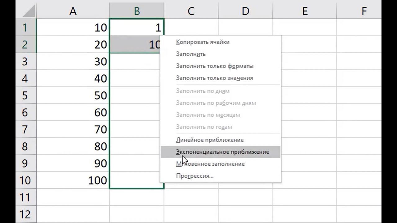 Cоздавать списки также можно на основе арифметической или геометрической прогрессии. Если указать два первых значения списка, а затем выполнить автозаполнение правой кнопкой мыши, то можно выбрать тип прогрессии, который должен использоваться: арифметический (линейный, +шаг) или геометрический (экспоненциальный, *шаг). #Shorts