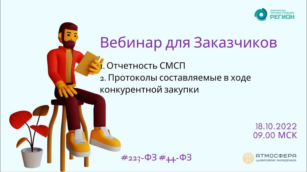 Подписывайтесь на нас в социальных сетях, чтобы не пропустить свежие новости: https://academy-atmosphere.ru/zakupki https://t.me/academy_atmosfera https://vk.com/academy_atmosfera https://rutube.ru/channel/24606397/ 01:10 Приветствие спикера Султанова Лилия Файласовна 01:37 ОТЧЕТНОСТЬ СМСП 02:26 Кто должен формировать годовой отчет? 08:12 Особенности проведения закупок с ограничениями для СМСП и самозанятых 11:14 Алгоритм формирования отчетности 14:37 Определение выполнение норматива о закупках у СМСП и самозанятых по плану закупок 22:50 Годовой отчет о закупках у СМСП 25:16 Расчет ГОЗ для определения доли закупок у СМСП 31:08 Ответы на вопросы 01:41:55 Приветствие спикера Маслова Елена Александровна 01:41:58 Протоколы составляемые в ходе конкурентной закупки 01:43:26 ФЗ-44 01:45:38 Основания для отклонения 1 часть заявки (Конкурс) 01:46:26 Протокол рассмотрения и оценки первых частей заявок на участие в закупке должен содержать (КОНКУРС) 01:48:56 Протокол подачи ценовых предложений (Конкурс) 01:49:10 Основания несоответствия заявки требованиям по 2 части (Конкурс) 01:50:15 Протокол подведения итогов (Конкурс) 01:50:43 Разъяснения результатов 01:51:26 ФЗ-44 01:52:58 223-ФЗ 01:54:20 Протокол по результатам этапа (п. 13 ст. 3.2) содержит 01:55:49 Протокол по итогам конкурентной закупки (п. 14 ст. 3.2) содержит 01:56:10 Порядок размещения протоколов 02:00:45 Практика Решений по жалобам и ответы на вопросы 02:11:41 Демонстрация регистрации на площадке ЭТП "РЕГИОН" и анонс вебинаров