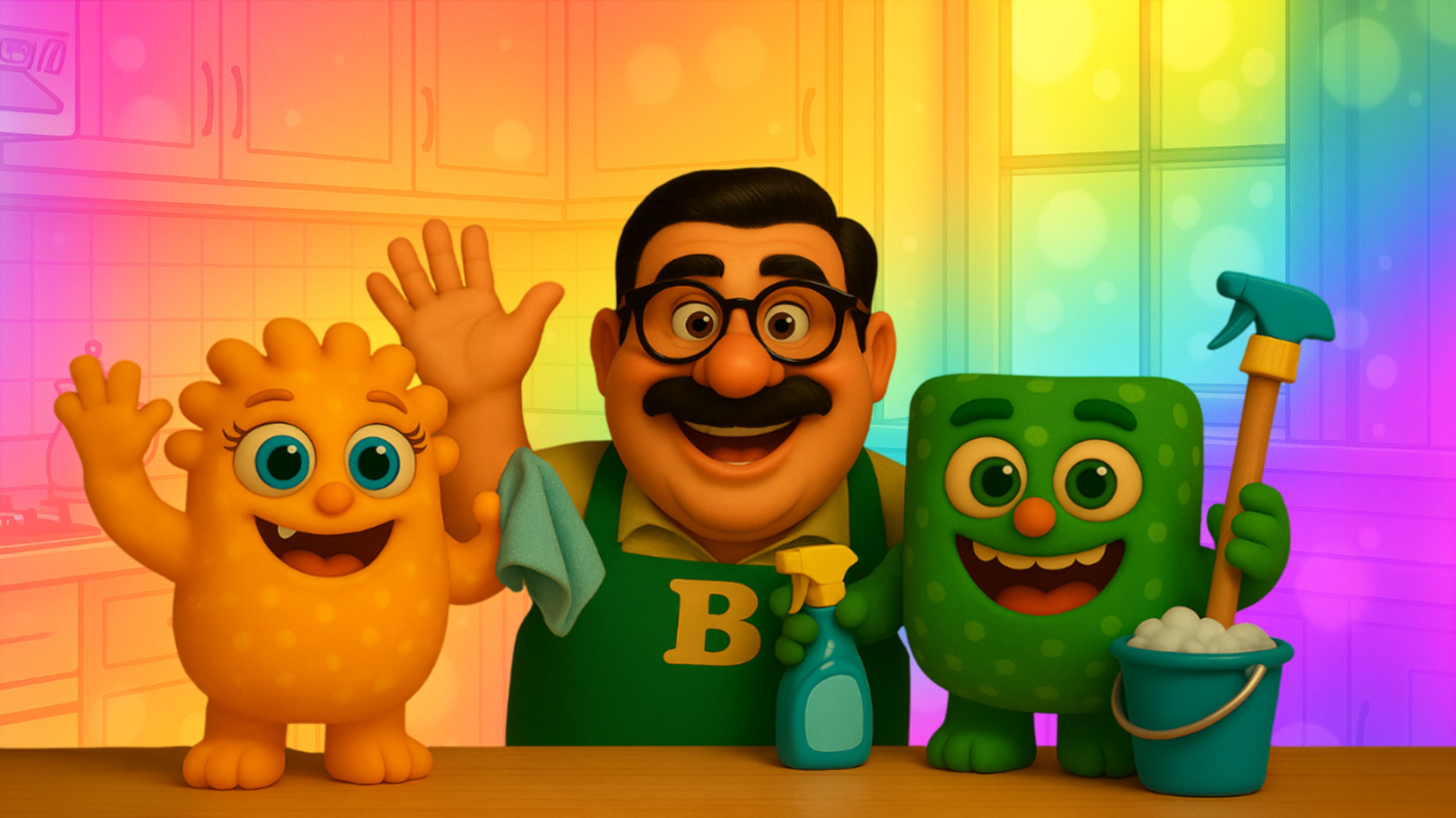 Сегодня — День уборки! 🙌 Мистер Бернер заходит на кухню и видит полный хаос: игрушки, печенье, сок на полу и монстрики, которые носятся туда-сюда. Но вместо того чтобы расстроиться, он превращает уборку в настоящую игру 🎲 Смотрите, как милые монстрики и Мистер Бернер: – превращают уборку в весёлую игру 🧹 – поют смешные песенки и маршируют с игрушками 🎶 – моют посуду, вытирают столы и даже пылесосят игрушечным пылесосом – попадают в забавные ситуации (облака муки, разлитый сок, проделки кота 🐱) – а в конце дружно делят вкусное печенье 🍪 Если вы любите забавные мультфильмы для всей семьи — это видео для вас! 👉 Не забудьте поставить лайк, подписаться и поделиться с друзьями! Таймкоды 0:00 – 1:15 — 🍪 Хаос на кухне 1:15 – 1:25 — 📦 Подготовка 1:25 – 1:55 — 🧸 Уборка игрушек 1:55 – 4:36 — 🧹 Уборка кухни 4:36 – 5:30 — 📚 Порядок в доме 5:30 – 7:40 — 🎉 Финал и печенье #мультфильмдлядетей #детскиеприключения #семейныймультфильм #мультфильмыонлайн #юмордлядетей #анимациядлядетей