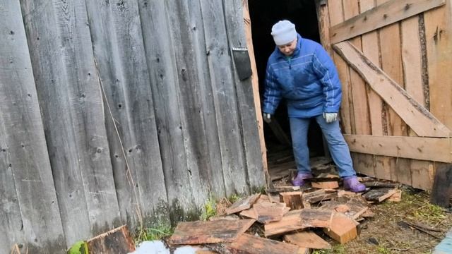 Убираю обрезки досок до снега.