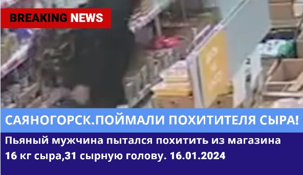 ?В Саяногорске пьяный мужчина пытался похитить из магазина 16 кг сыра.16.01.2024
