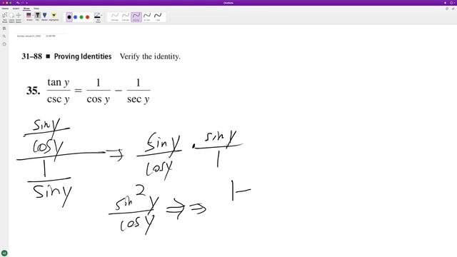 Verify tan y / csc y = 1/cos y - 1/ secy