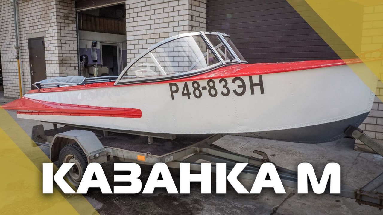 Казанка М Ветровое стекло Элит с боковиной Классик, покраска в бело-красный
