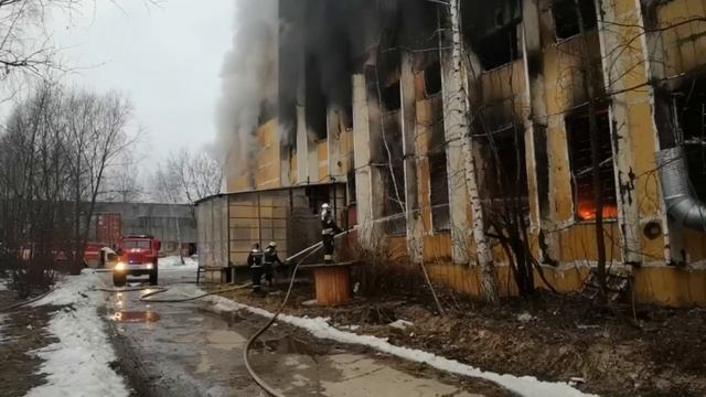 В Химках горит помещение по производству и хранению пленки на площади 1200 кв.м. Пожарные на месте