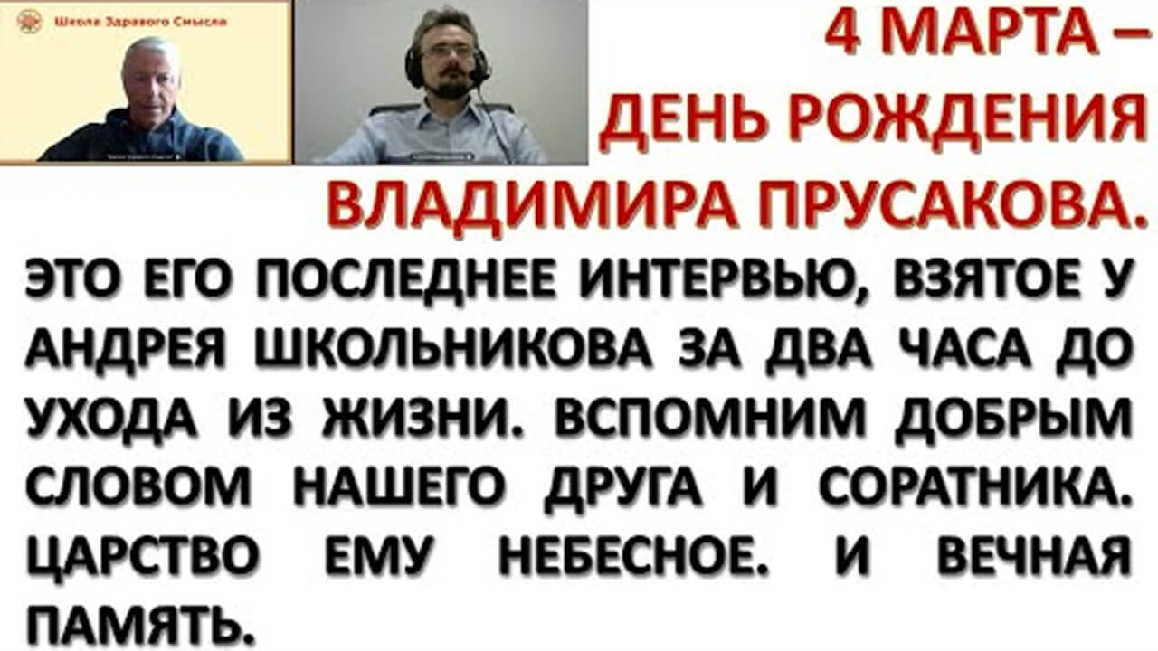 Это интервью, которое Владимир Викторович Прусаков взял у Андрея Школьникова, было записано им за два часа до того, как он скоропостижно ушел из жизни. Сегодня, 4 марта, ему исполнилось бы 68 лет. Помним, молимся, любим.