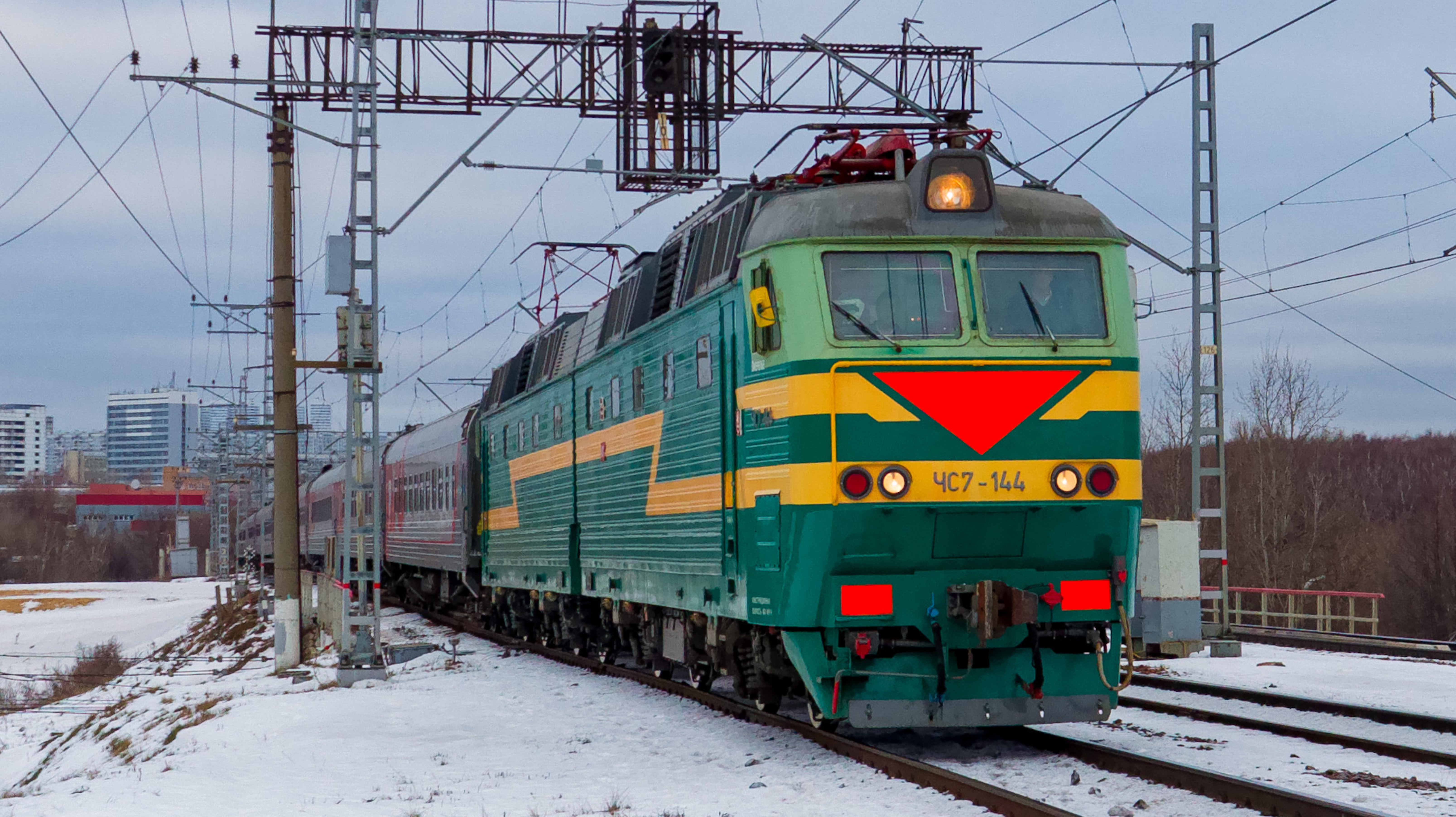 ЧС7-144 с поездом Москва-Волгоград проследует перегон Чертановская–Бирюлёво-товарная