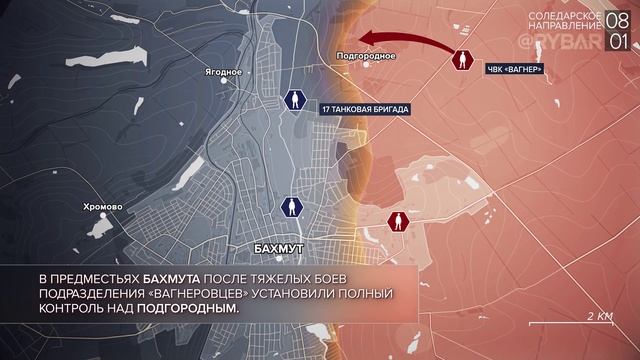 ▪️Украинские формирования вновь нанесли артиллерийский удар по поселку Теткино в Курской области. В результате обстрела осколками снарядов повреждены линии электропередачи. Экстренные службы ведут восстановительные работы. ▪️Несмотря на ожесточённое сопротивление противника, штурмовые отряды ЧВК «Вагнер» успешно продвигаются в городской застройке Соледара. Украинские части отступили в западную часть города и ведут оборону, опираясь на многоэтажную застройку и рудники по добыче соли. ▪️В предместьях Бахмута после тяжелых боев подразделения «вагнеровцев» установили полный контроль над Подгородным. Потеря поселка значительно осложняет ситуацию для группировки ВСУ в городе, угрожая блокированием с севера. ▪️В самом Бахмуте бойцы ЧВК «Вагнер» продавливают оборону противника, продвигаясь в жилой застройке на юго-восточных окраинах. Идут бои в Опытном и на подступах к Клещеевке. Противник ценой высоких потерь продолжает удерживать хорошо укрепленные позиции. ▪️Российская армия нанесла ракетный удар по местам дислокации личного состава ВСУ в Краматорске. Поражены здания училищ, где были расквартированы украинские подразделения. Точные данные о потерях противника отсутствуют. ▪️Несмотря на российские инициативы по временному прекращению огня, ВСУ демонстративно продолжили обстрелы Донбасса. Удары наносились практически по всем прифронтовым городам. Зафиксированы множественные разрушения жилых и муниципальных объектов. ▪️Помимо жилых кварталов, украинские формирования нанесли удары по энергообъектам Донецкой Народной Республики. Повреждена инфраструктура Старобешевской и Зуевской ТЭС. Есть погибшие и раненные из числа сотрудников станций. #видеокарта #фронт #хроника #сво #дайджест #Донецк #карта #Луганск #Россия #Украина