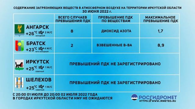 [01.07.2022] Мониторинг состояния атмосферного воздуха 30.06.2022