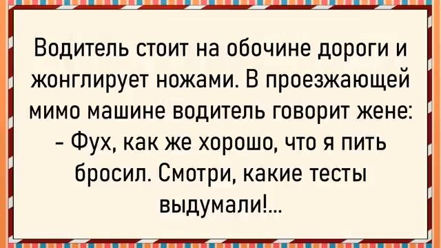 Как тёща за границей мужика искала! Сборник свежих анекдотов! Юмор! 00:00:00 Ошибка доктора • Доктор случайно перепутал капельницу. 00:00:10 Находка кошелька • Девушка находит кошелёк с деньгами и визиткой на имя Гарика Марьяна. 00:00:27 Русские майки и турки • Русские майки с надписью «У турков три проблемы» вызывают агрессию у турков. 00:01:08 Стадии развития мужчины • Три стадии развития мужчины: младенец, подросток, муж. 00:01:18 Бар и парень • Мужчина пытается купить выпивку девушке, у которой есть парень. 00:01:32 Зарплата без опыта • Сотрудник просит высокую зарплату, не имея соответствующего опыта. 00:01:43 Меч на AliExpress • Муж рассказывает жене о заказе меча на AliExpress. 00:01:57 Давид и статуя • Давид пытается оправдаться за статую, но его не верят. 00:02:10 Метро и деньги • Девушка возмущается из-за молодого человека, который прижимается к ней. 00:02:37 Утро после пьянки • Мужчина просыпается в пижаме, находит записку от жены и удивляется чистоте квартиры. 00:03:28 Удаление зуба • Доктор случайно удаляет здоровый зуб, вызывая смех. 00:03:40 Танец и декольте • Женщина беспокоится о глубине декольте, партнёр шутит о волосах на груди. 00:04:05 Ролевые игры • Жена говорит о любви к ролевым играм, муж предлагает поиграть в «мафию». 00:04:23 Игра маленького мальчика • Мальчик играет в игру, сбрасывая вещи, нянечка спрашивает, в какую игру он играет. 00:04:40 Мясная лавка • Женщина покупает курицу, мясник обманывает её, показывая разные веса. 00:05:09 Лайнер и Оскар • Капитан объявляет о получении одиннадцати Оскаров. 00:05:34 Ку-клукс-клан • Вопрос о вступлении в Ку-клукс-клан, ответ: «Нужно валянуть вон тех шесть джентльменов и одного кота». 00:14:00 Почтальон и дог • Почтальон боится огромного дога, но хозяйка успокаивает его, говоря, что пёс кастрированный. 00:14:13 Разговор о встрече • Мужчина выражает желание увидеться с девушкой, но она отказывается, ссылаясь на планы с друзьями. 00:14:25 Новости о Светке • Упоминается, что Светка родила тройню, а отец в реанимации. 00:14:36 Урок арифметики • Учительница задаёт вопрос Вовочке о распределении денег, на что он отвечает, что у него будет «три бабы и шикарная ночь». 00:14:52 Хорьки в зоомагазине • Продавец рекомендует хорьков, описывая их как комфортных и ласковых животных. 00:15:13 Курсы по азбуке Морзе • Муж шутит о курсах по азбуке Морзе, прислушиваясь к стуку капель дождя. 00:15:26 Татуировка • Сын просит маму сделать татуировку, на что она отвечает, что они с отцом набьют ему татуировку ремнём. 00:15:37 Жонглёр ножами • Гаишник останавливает машину с десятью ножами в багажнике, водитель объясняет, что он жонглер, и демонстрирует своё мастерство. 00:16:20 Ночной звонок • Муж отказывается помочь пьяному мужчине, который просит его подтолкнуть, но жена настаивает, и муж выходит во двор. 00:17:28 Эксперимент в троллейбусе • Пассажир пытается найти валидатор в троллейбусе, кондуктор шутит о приложении пластиковой карты к заду. 00:17:44 Кража панды • Василий признаётся, что украл панду из зоопарка, в клубе анонимных алкоголиков его приветствуют. 00:17:57 Экзамен и блондинка • Профессор спрашивает блондинку о корпускулярно-волновой природе света, она отвечает, что она Марина. 00:18:09 Депрессия кошки • Кошка впала в депрессию, ей советуют любого кота. 00:18:17 Шотландец и резинка • Шотландец спрашивает фармацевта о стоимости ремонта резинки, возвращается с решением, что полк проголосовал за