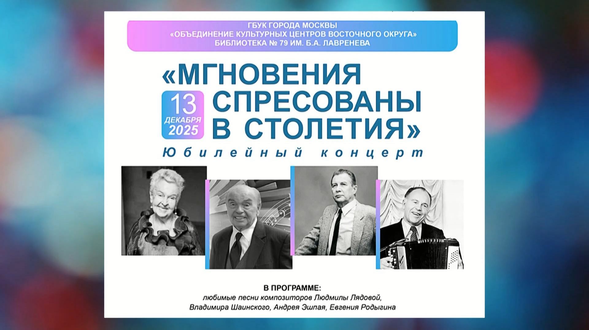 «Мгновения сплетаются в столетия» (13/12/2025 ) - концерт в библиотеке №79 - ДЦК "Шанс"