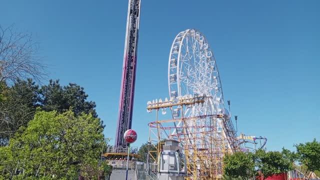 Аттракцион развлечений . Колесо обозрений . горки