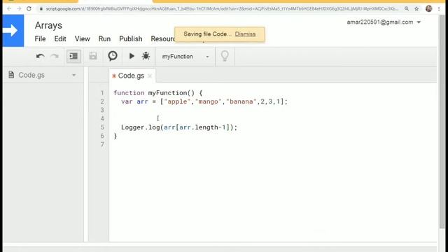 Google Sheet App Script /JavaScript Programming Tutorial in Hindi In this video tutorial I have shown how to define array in AppScript / JavaScript of Goole script editor. Topics covered in this video are : array syntax, 1d , 2d , multidimensional array, array length, join array elements, how to add new element in array (push), how to delete element (pop), access /delete first or last element of an array #JavaScriptArray #AppScript #GoogleSheet #JavaScript #ScriptEditor #SpreadSheet