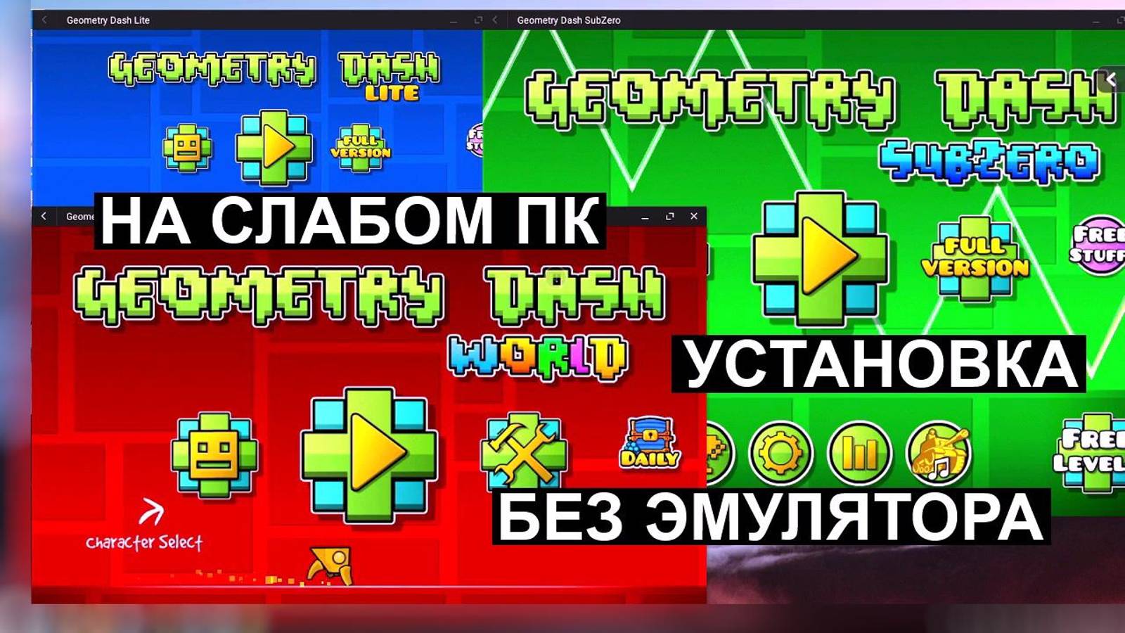 Android Geometry Dash без эмулятора на слабом пк 60 fps Core 2 Ram 2gb Video 512mb