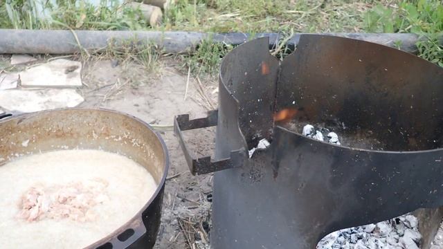 Вспоминая лето 2023. ГОТОВИМ КАШУ В КАЗАНЕ на открытом огне на даче летом. Каша в казане с тушёнкой