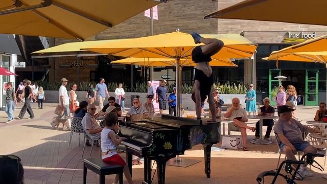Импровизация Рэгтайм!!! пианино на улице. Шансон: Турецкий марш Моцарта Джингл Белл Рэгтайм. Место: Сан-Франциско, Калифорния, Район залива, Уолнат-Крик, Бродвей Плаза. Пианист: Пол Петреску (8 лет)