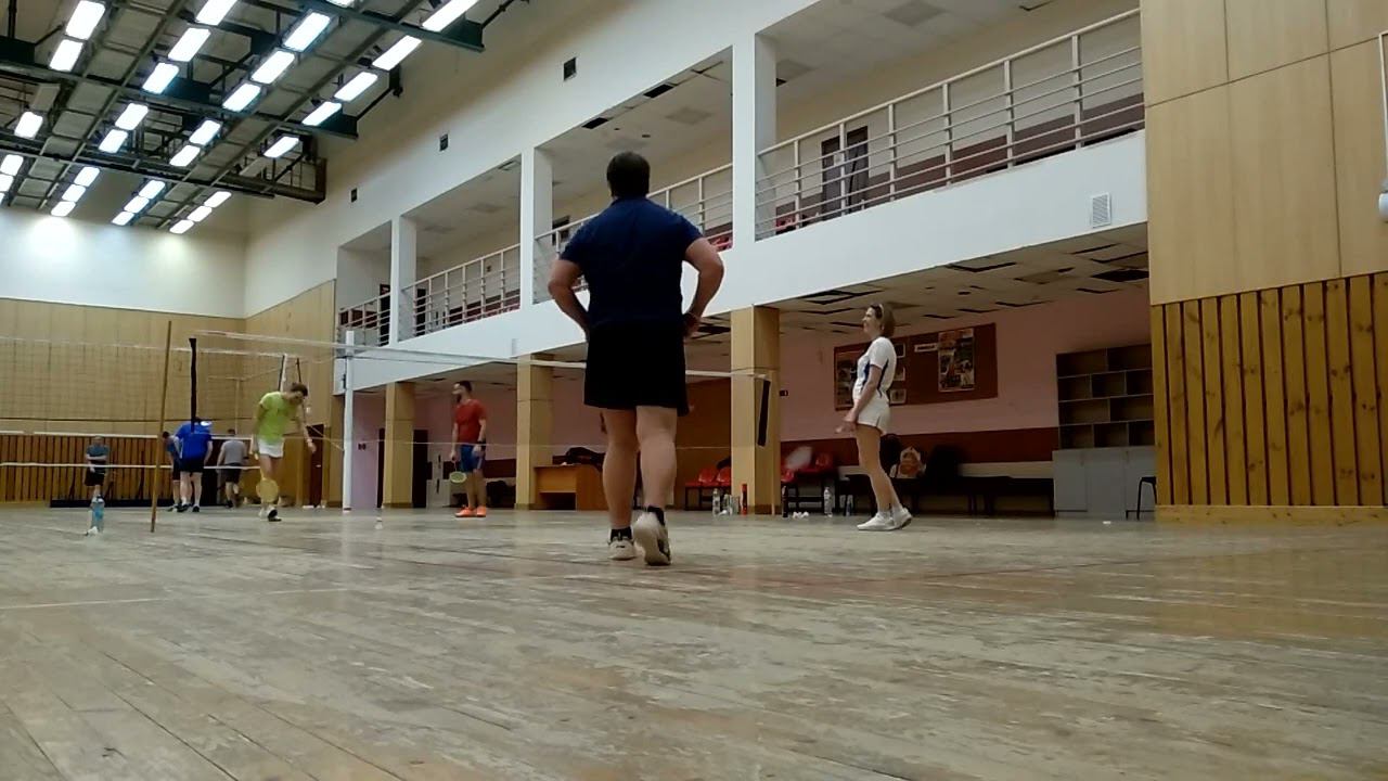 Тренировочная игра в бадминтон через сетку. Играют любители, новички и опытные бадминтонисты. Игра в Лестехе (МГУЛ ранее, сейчас называется филиалом Бауманки). Хочешь тоже играть? Приходи - https://badminton77.ru/map/4/ #badminton #badmintonlovers #badmintonrussia #lesteh #ЛесТех #бадминтон
