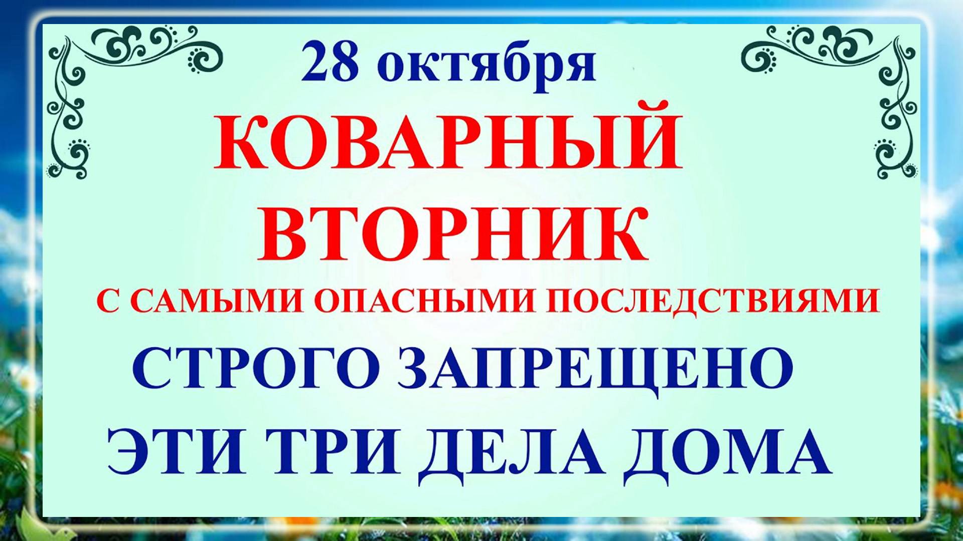 📚 День памяти святого Ефимия Солунского — 28 октября ежегодно отмечают православные верующие. ✨ Приметы: Снежная погода означает морозную и снежную зиму, облачность утром сулит ухудшение погоды. 👥 Семейные традиции: Утро начинается с прочтения молитв святому Ефимию. 🌾 Обработка льна: Наши предки занимались подготовкой льна, что символизировало здоровье и удачу. 💀 Защитные нити: Льняные нити, обработанные в этот день, использовались как амулеты от болезней. 🎭 Народные игры: Работы сопровождались веселым настроением, шутками и песнями. ❤️ Запреты: Нельзя ругаться, сквернословить, конфликтовать и работать по дому. 🔍 Наблюдение за животными: Их поведение даёт подсказки о будущей погоде. ☝️ Оберегающие советы: Больше улыбайтесь, сохраняйте хорошее настроение и сознавайте важность хороших слов. 🧵 Нежелательные действия: Посещение леса, работа с инструментами и ремёсла под запретом. 👉 подпишитесь и сделайте донат!