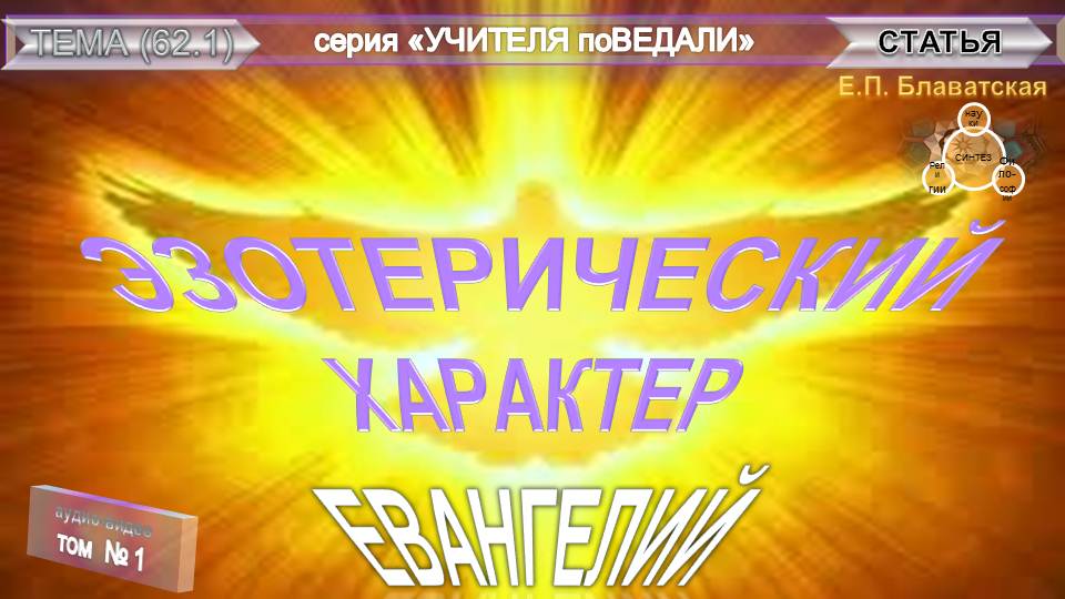 (1) ЭЗОТЕРИЧЕСКИЙ ХАРАКТЕР ЕВАНГЕЛИЙ-1 глава стать Е.П. Блаватской (1831-1891)