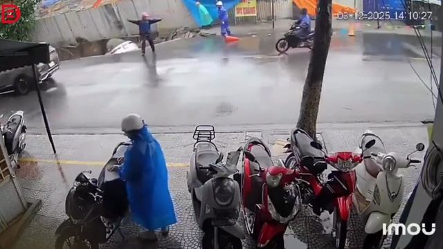 В центре Дананга внезапно образовался провал грунта, поглотивший два автомобиля