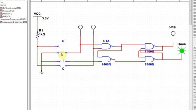 Исследование работы D-триггера на элементах И-НЕ в Multisim 14.1