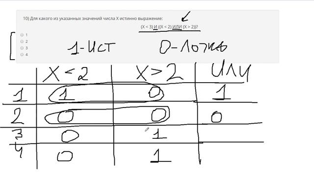 https://www.egoroffartem.ru/oge/task/2 На сайте размещены другие задания по этой теме https://www.egoroffartem.ru/oge/videotask/2 Список всех разборов 2 задания из ОГЭ по информатике: https://www.egoroffartem.ru/oge/videotask/ Видео решения задач по ОГЭ информатике https://vk.com/egoroff_channel_oge В данном группе можете найти информацию о новых видео и задать вопросы по ОГЭ Информатике Разбор задания № 2 ОГЭ ИНФОРМАТИКА Тема задачи "Логические выражения" Для какого из указанных значений числа X истинно выражение: (X меньше 3) И ((X меньше 2) ИЛИ (X больше 2))?