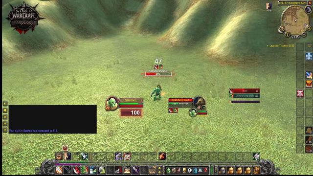 No Quests (Bloodbath), World Buffs, Professions (Nobody Got Time for That), and Potions (No Health Potions). Naked (Nudist) with Only Battle Stance and 1 hand/shield (Tied Hands and Sword and Board Warrior Achievement). No Groups (Solitary Struggle). Grey and white weapons only (White Knight. No bank or Hearthstone (Vagrant). Staying on Kalimdor (Homebound). No Humanoid Kills (Humanist). No Flight Path or Mount (Grounded). World of Warcraft Classic Hardcore Challenge. Death=Delete. Only 1 Life.