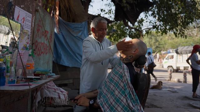 БРИТЬЕ И МАССАЖ С МАСЛОМ . НАСТОЯЩИЙ ИНДИЙСКИЙ УЛИЧНЫЙ ПАРИКМАХЕР