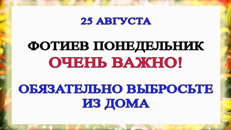 25 августа православная церковь вспоминает мучеников Фотия и Аникиту, пострадавших за веру. В народе этот день называли Фотя Поветённый и посвящали уборке сараев и кладовых. Хозяйки выметали мусор новым веником и оставляли его у двери как оберег. Мужчины в этот день утепляли дома и хлева, готовя хозяйство к холодам. Главный запрет — не подниматься на чердак, чтобы не потревожить домового. Ссоры, шумные пиры и смех в постели перед сном также считались плохой приметой. Девушки клали под подушку белый платок и просили святого Фотия показать суженого. Приметы дня предсказывали погоду: дождь сулил короткое бабье лето, солнце — урожай грибов. Сны в ночь с 24 на 25 августа считались вещими и могли подсказать судьбу. Наши предки верили: чистота и порядок в этот день притягивают счастье и достаток.