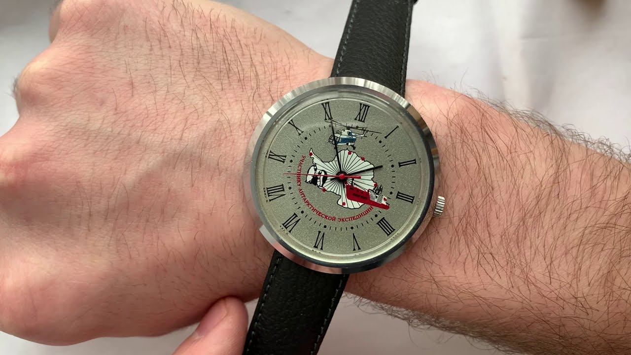 Видеообзор на экспериментальные часы «Ракета» "Участнику Антарктической экспедиции" на базе механизма «Плоская Россия» 2609.НА Петродворцового Часового Завода 1980-х годов.