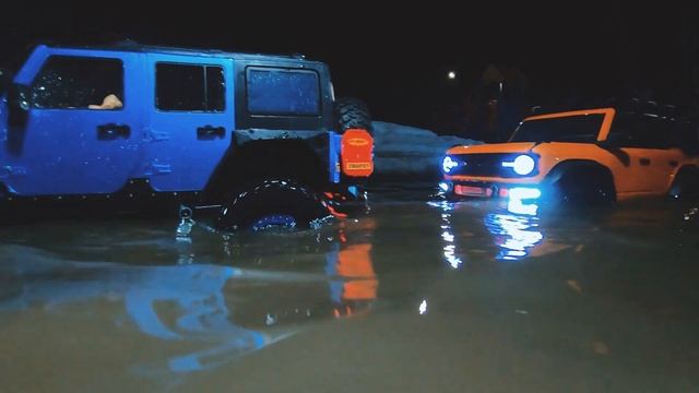 Ford Bronco VI Wildtrack и Jeep Wrangler JK Rubicon на радиоуправлении и весеннее половодье.