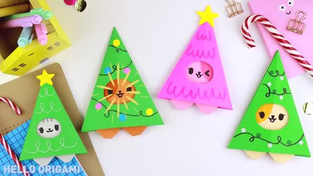 Новогодние елочки-котики из бумаги