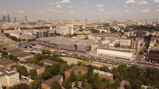 Москва с высоты птичьего полета. Вдали видна Москва-Сити.