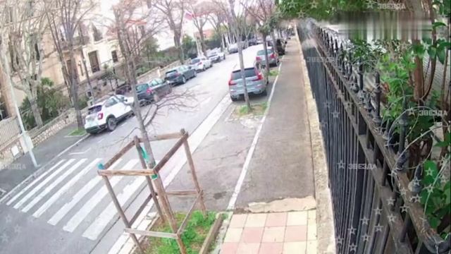 Момент заброса взрывных устройств в сад генконсульства РФ в Марселе 24.02.25.