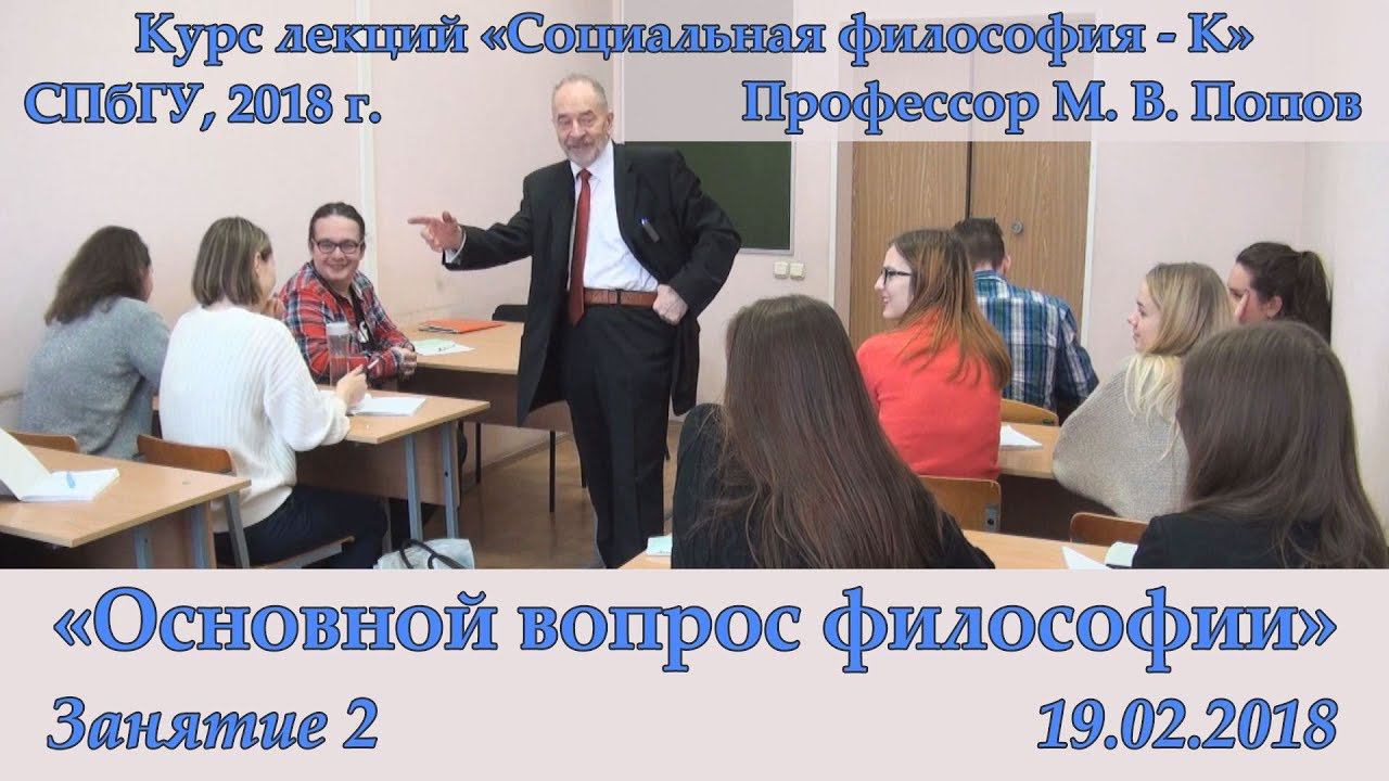 М.В.Попов. 02. «Основной вопрос философии». Курс «Социальная философия К-2018». СПбГУ.