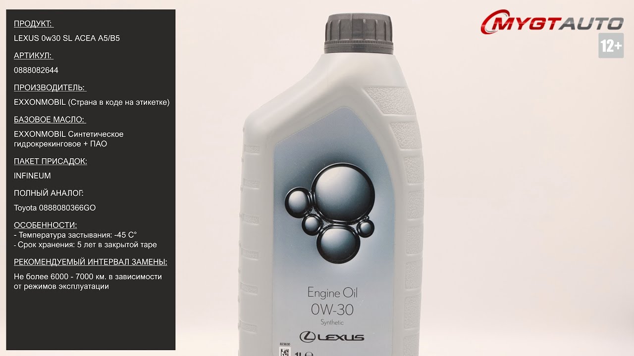 Продукт: Моторное масло LEXUS SAE 0W-30 API SL ACEA A5/B5 ILSAC GF-5 Наш телефон: 8-800-550-57-22 ПН-ПТ 9.00-17.00 (МСК+4) Артикул: 0888082644 LEXUS 0w20 SN ILSAC GF-5 0888082645GO 5л. Старые артикулы: 0888080360 / 0888080360GO 0W30 - 208Л 0888080365 / 0888080365GO 0W30 - 5Л 0888080366 / 0888080366GO 0W30 - 1Л Аналоги: Toyota 0888080366GO Европа Toyota 0888080365 Европа Производитель: EXXONMOBIL (Страна производства указана на задней этикетке) Базовое масло: EXXONMOBIL Синтетическое гидрокрекинговое + ПАО. Пакет присадок: INFINEUM Ссылка для покупки: https://mygt.ru/oil/original-oils-Europe/lexus-0w-30-1-l.html Особенности: Синтетическое моторное маcло SAE 0W-30 LEXUS обладает уникальными характеристиками и соответствует наивысшему классу по классификации API. Оно является универсальным и прекрасно подходит как для бензиновых, так и для дизельных двигателей, обеспечивая легкий пуск двигателя, идеальную чистоту всех деталей и узлов, наивысшие мощностные показатели и максимальный ресурс двигателя. Благодаря особым вязкостно-температурным характеристикам, моторное масло 0W-30 LEXUS наилучшим образом решает проблему недостаточного смазывания двигателя при холодном пуске и обеспечивает максимальную надёжность его работы. Содержит ряд присадок для экономии топлива и облегчения пуска двигателя в любую температуру. Все оригинальные моторные масла Toyota соответствуют не только международным стандартам API (Американского института нефти) и ACEA (Ассоциации европейских автопроизводителей), но и строжайшим требованиям к качеству и эксплуатационным характеристикам. Компания Toyota тестирует свои масла в условиях, максимально приближенных к реальным, используя для испытаний оригинальные двигатели автомобилей Toyota. Поэтому смазочные материалы Toyota обладают оптимальным качеством и характеристиками, обеспечивающими наилучшую работу двигателя. Характеристики: Плотность при 20°C, кг/л: 0,845 Вязкость при 40°C, мм²/с: 70,10 Вязкость при 100°C, мм²/с: 10,40 Температура застывания: -39°C Температура вспышки: 232°C Сульфатная зольность, %: 0.92 Срок хранения 5 лет в зарытой таре. Рекомендуемый интервал замены: согласно рекомендациям производителя вашего автомобиля. Отличие упаковки оригинала: Двухслойная этикетка на задней части канистры имеет клеевой слой. Дата производства тары на дне упаковки должна быть ровна или ранее даты блендирования продукта. Каждая банка в коробке имеет свой уникальный серийный номер. Номера в одной коробке идут в порядке возрастания. Ссылки на дополнительные материалы и SDS по продукту: http://nskrobot.ru/images/FOTO/MYGT_RU/0888082644.pdf #характеристикимасла0888082644 #моторноемасло #antonmygt #mygtru #mygtauto #oemcatalog Наш сайт: MYGT.RU Наш канал ПРАВДА ПРО АВТОМАСЛА: https://www.youtube.com/channel/UC5JygfcXAA5Xq18sxUx_wIQ/ Телефон: 8 800 550 57 22 Бесплатно по России. Внимание! Полное либо частичное копирование данного материала без согласия автора допускается только при указании ссылки на источник (данный канал). Все права защищены. ANTON_MYGT #anton_mygt #anton_voronkov #mygtauto #масломан #каталог масел и спецжидкостей
