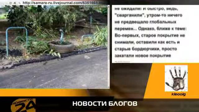 Выставку новых слоганов обнаружил блоггер Игорь Кондратьев, блоггер kleoolg не довольна качеством ремонта внутриквартальных дорог, а блоггер Александр Рыбушкин обнаружил зебру, не совпадающую с пешеходными дорожками. Другие видео новости Самары. http://www.trkterra.ru/video
