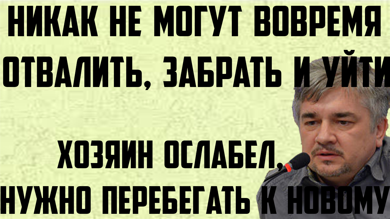 Ищенко: Хозяин ослабел, нужно перебегать к новому. Никак не могут вовремя отвалить. Забрать и уйти.