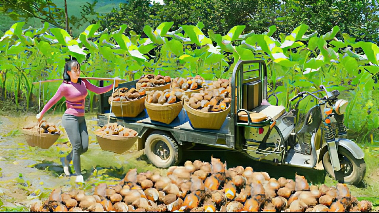 Сбор урожая Таро и продажа на сельском рынке. Жизнь во Вьетнаме