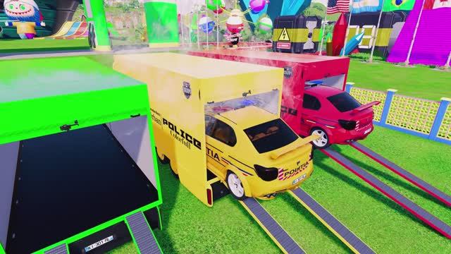 МУЛЬТИКИ ПРО ПОЛИЦЕЙСКИЕ МАШИНКИ. Перевозка машинок с мигалками на грузовиках. КРАСОЧНЫЙ МУЛЬТ
