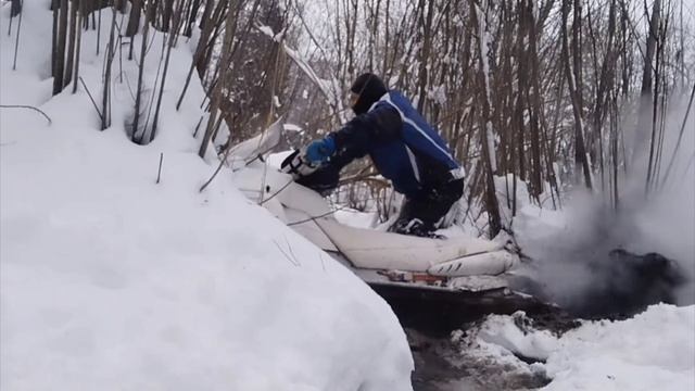 Через ручьи на снегоходе