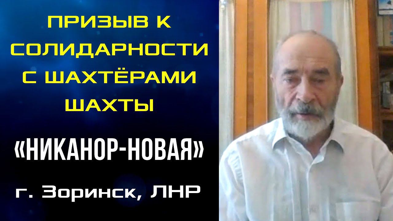 Призыв к солидарности с шахтёрами шахты Никанор-Новая (г. Зоринск, ЛНР). М.В.Попов. 03.05.2020.