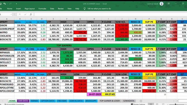 EXCEL INTRADAY TRADING SCANNER 14-07-2023