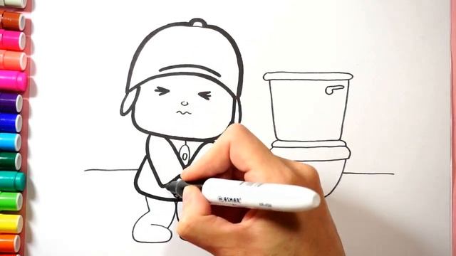 Dibujar y colorear para los niños como Pocoyo va al baño/dibujo para niños