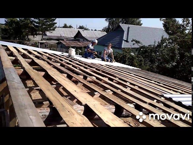 Ну вот и начали профнастилом закрывать крышу.