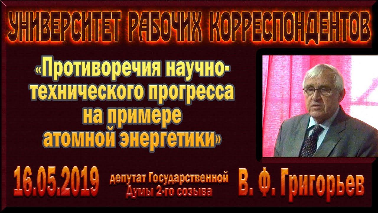 «Противоречия научно-технического прогресса на примере атомной энергетики» В.Ф.Григорьев. 15.05.2019