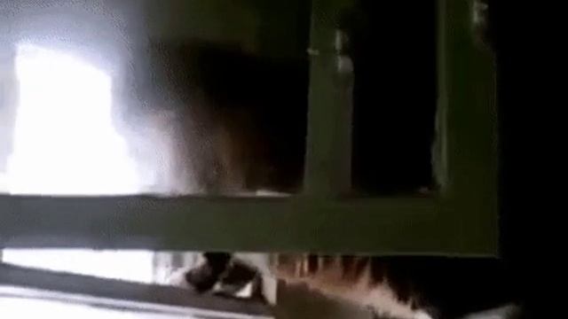 Сдесь в ролике показывают,как кот самостоятельно открывает форточку и вылазиет.